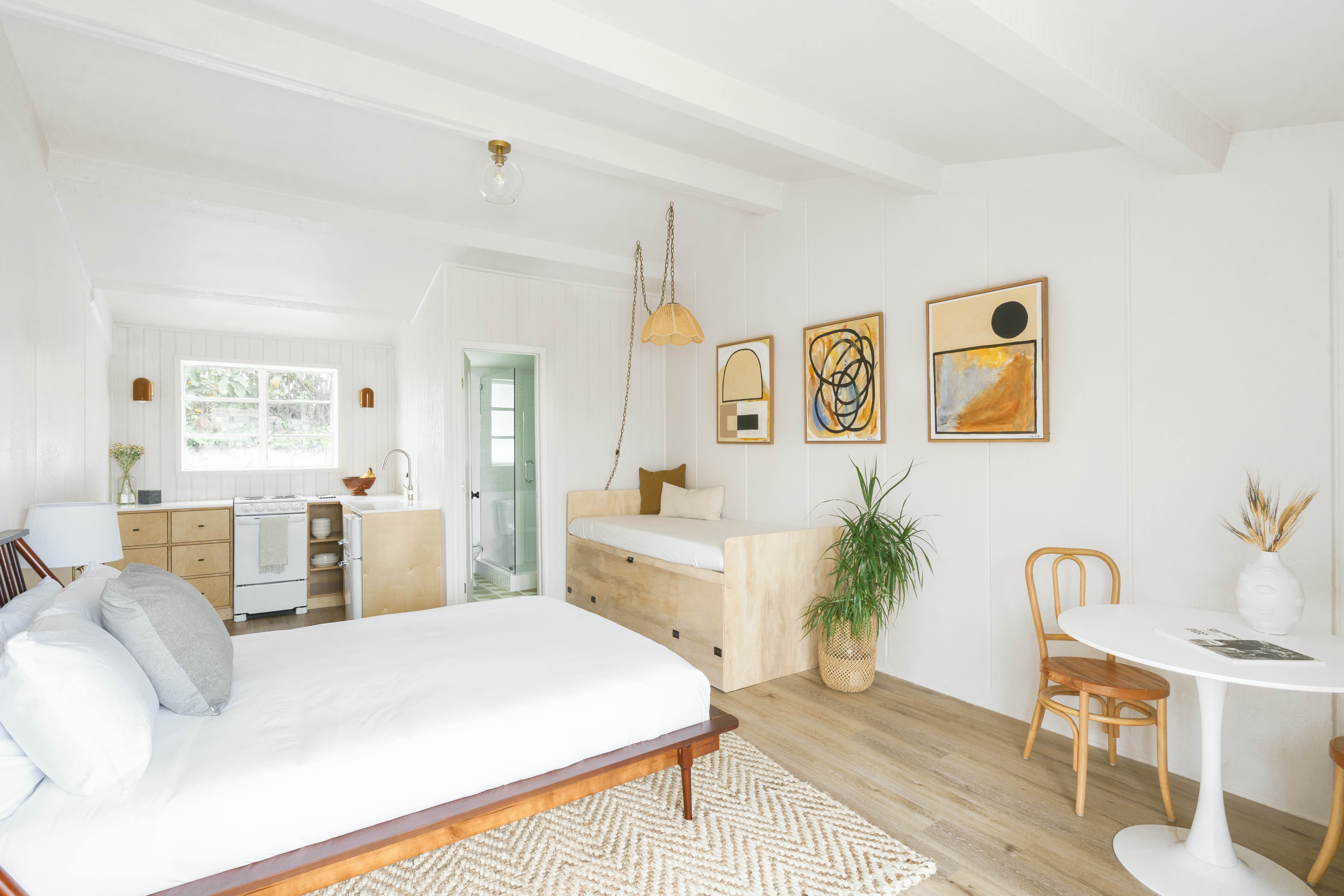 The hotel was fully renovated in 2021 after starting as a 1950s motel. Today, it features 12 individually designed suites that marry a bohemian style with a chic beach vibe. You can choose from six deluxe studios, five suites, and one two-bedroom suite, the last of which is a great choice for families thanks to its full kitchen, separate living and dining area, and outdoor patio.