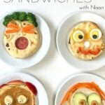 We later discovered that mini naan is the perfect size for easy open-faced and traditional silly sandwiches. So, we made a kids’ bento lunch with a shaped naan sandwich and silly sandwiches for a playdate snack. I’ll show you both.
