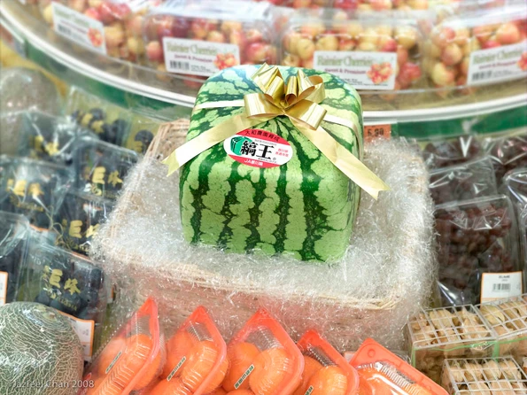 Our Hong Kong grocery store was city s’uper, and I have seen plenty of square watermelons with roughly USD 200+ price tags. They’re imported from Japan, where they’re grown in square containers.
