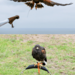 Harris’s hawks are special in that they hunt in groups which is a social behavior that makes them ideal for falconry and educational programs. Most other raptors prefer to go it alone. They are native to the southwestern United States and considered an intermediate size bird of prey. Sky Falconry has other birds, like a red-tailed hawk, lanner falcon and a yellow-headed vulture.