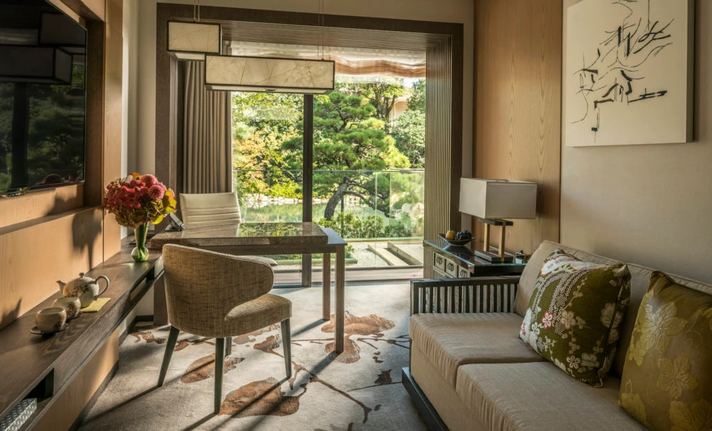 Ranging between 764 and 1,108 square feet, the Suites at Four Seasons Kyoto offer more space with high-end marble bathrooms, and separate sleeping and living spaces.