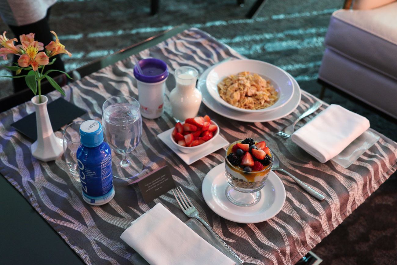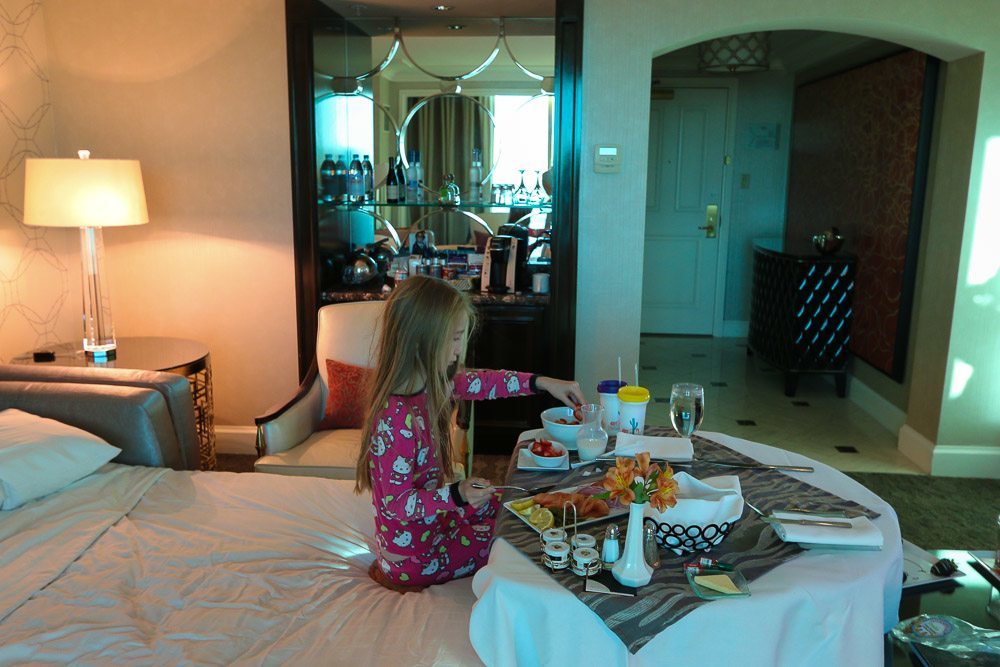 Though she didn’t inherit early dawn wake-ups from me, we do share a massive love of luxury hotel breakfast. My husband who usually skips breakfast and isn’t a stranger to Mexican food, raved about his (much needed after a late Vegas night) breakfast burrito. I ordered the beautifully-plated smoked salmon plate twice though the parfait hit the spot on the morning I headed to the Forbes five-star spa (highly recommend after a night out, especially).