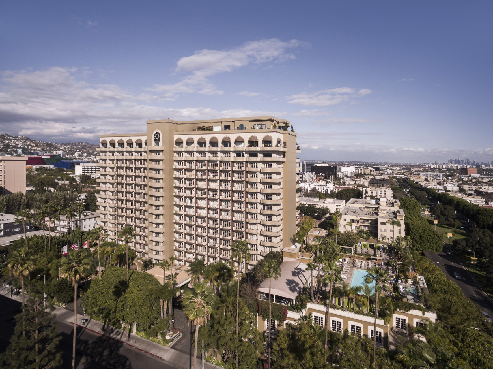 This fabulous Los Angeles luxury hotel has 285 rooms and suites boasting city views, some reaching as far as the Hollywood sign and downtown skyline in the distance. Rooms come with: