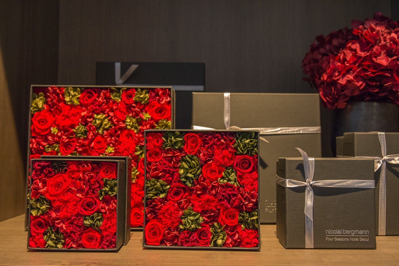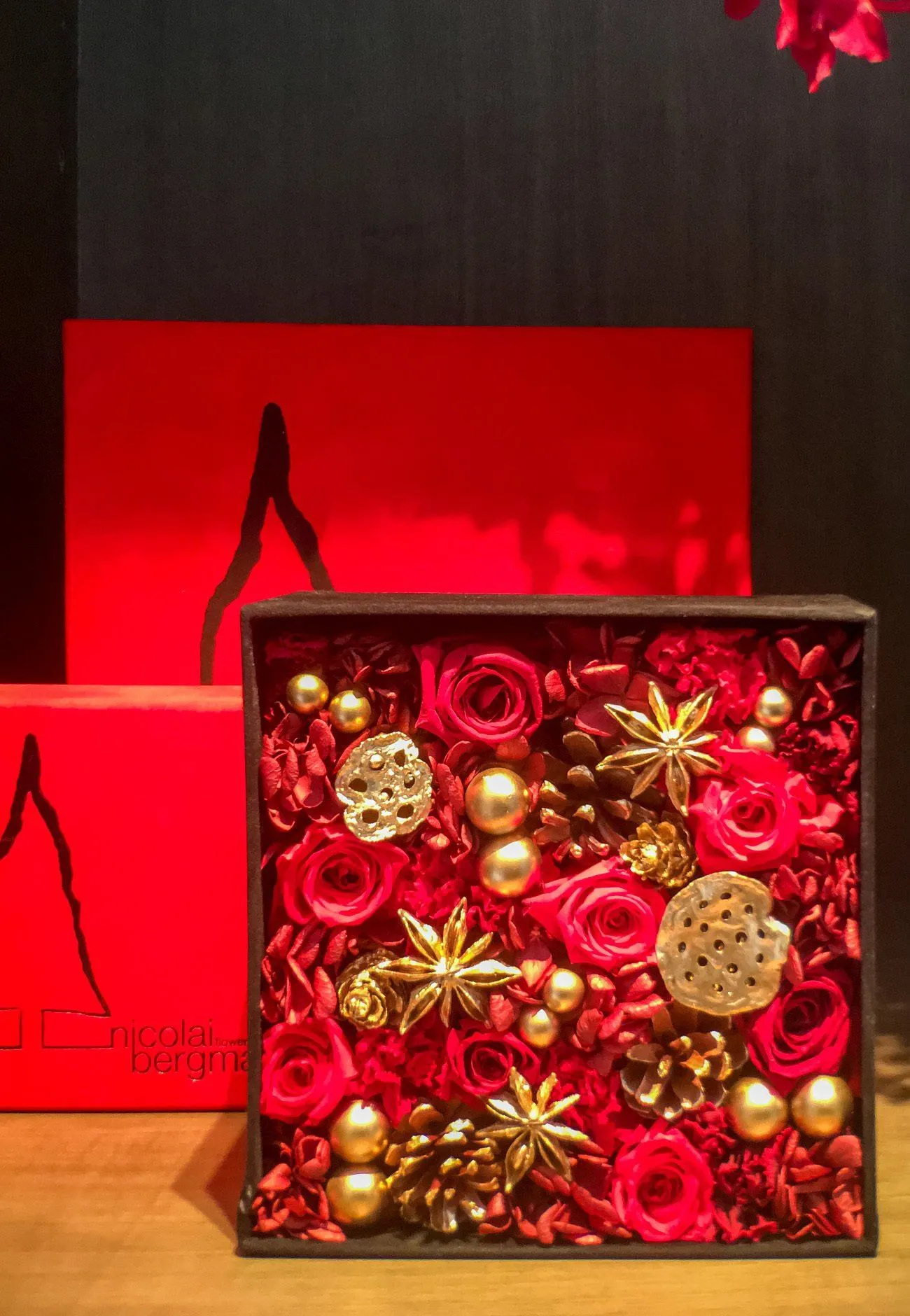 I stopped dead in my tracks upon my first sighting of a Nicolai Bergmann Flower Box, his innovation that is nothing short of extraordinary. They are incredibly popular in Tokyo, where he is based, and I was told that the preserved flower version would last from 3 – 5 years.
