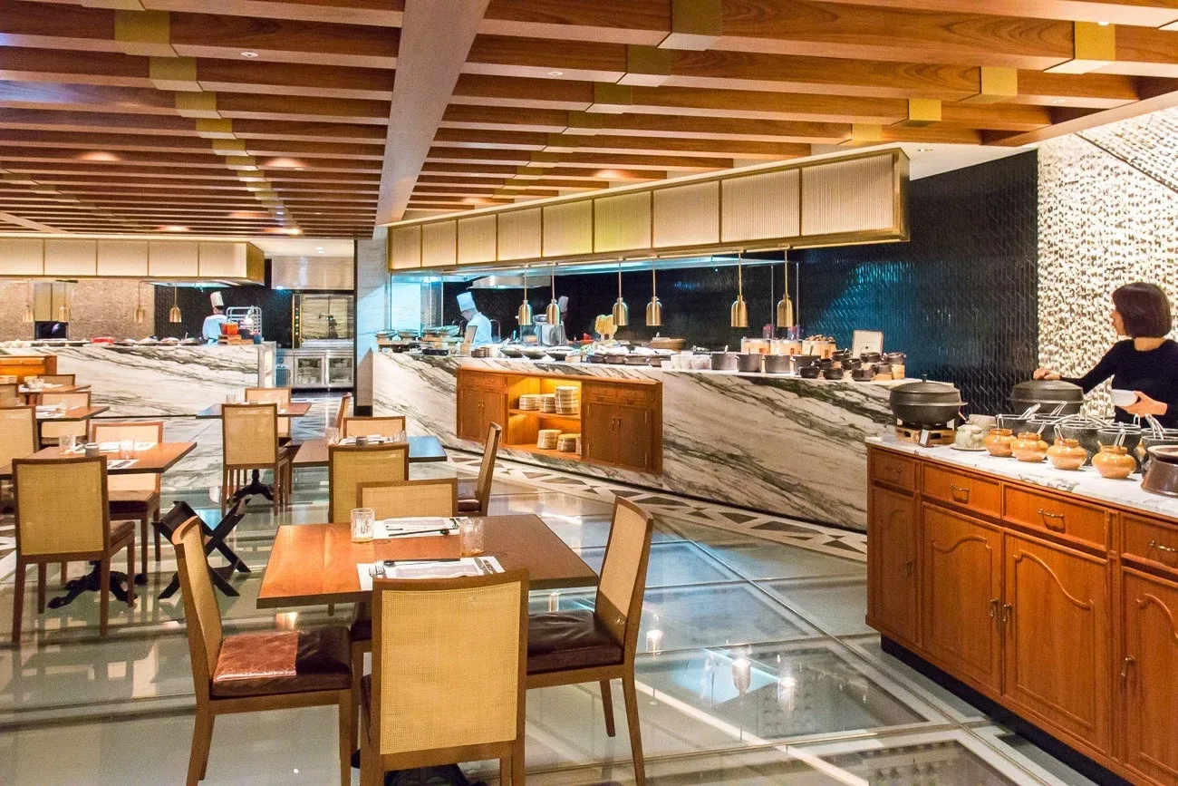 Chefs cook live right in front of you, but be sure to notice the ruins peeking through the glass floors. These were discovered during the hotel’s construction and a decision was made to showcase Korean history by leaving them intact.
