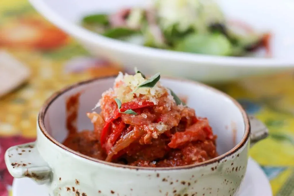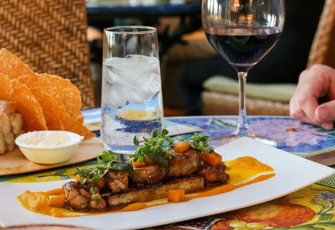 For main courses—and I was stuffed by the time they came—I opted for a healthy black cod in tomato brodo with baby squash, cherry tomato, and garden herbs.