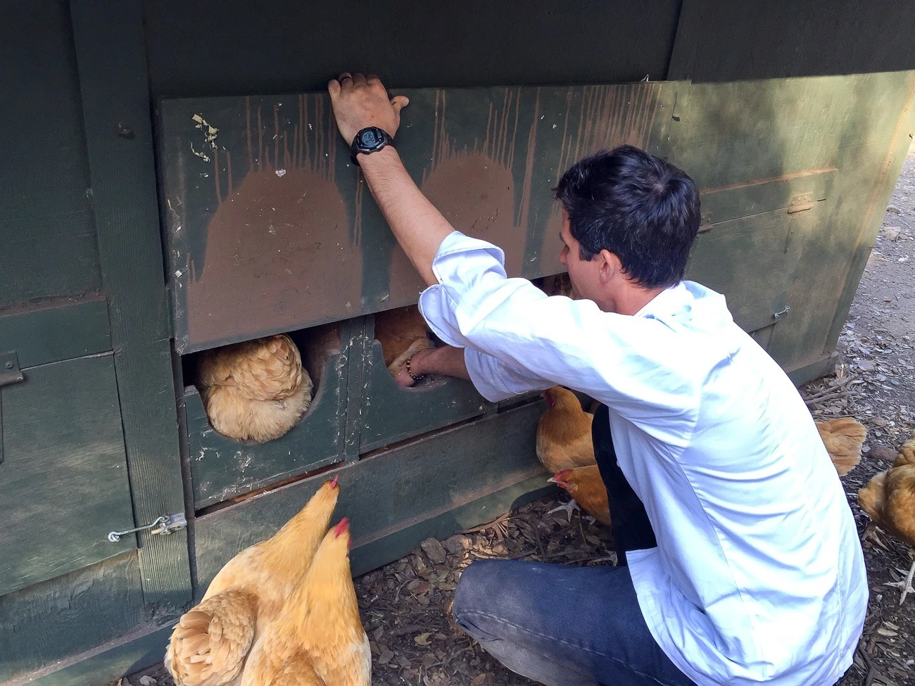 Some of the resort’s eggs come from the most chill and happy free range hens I’ve ever seen. A few of these hens actually like being held, so we took a chicken selfie, of course.