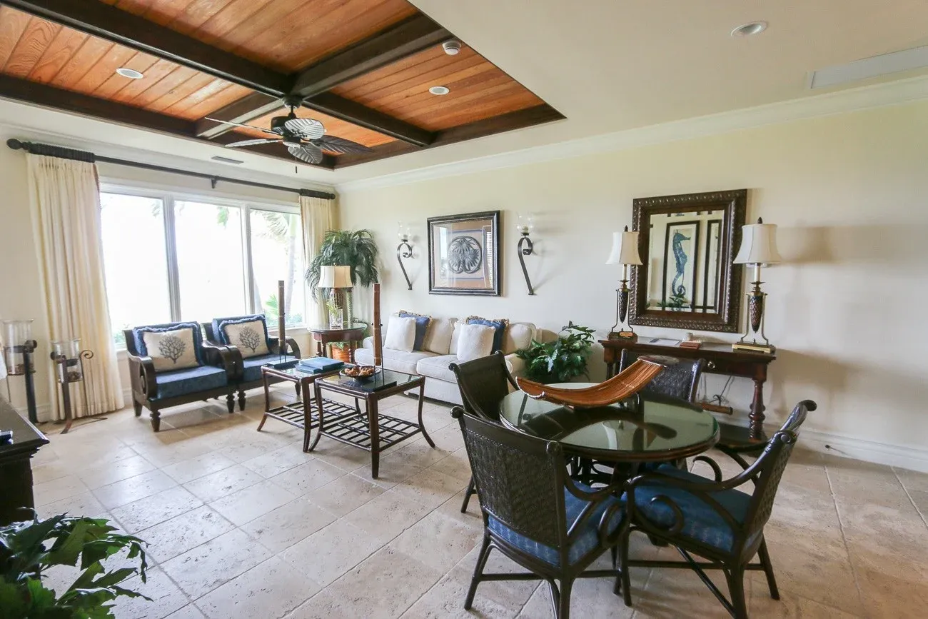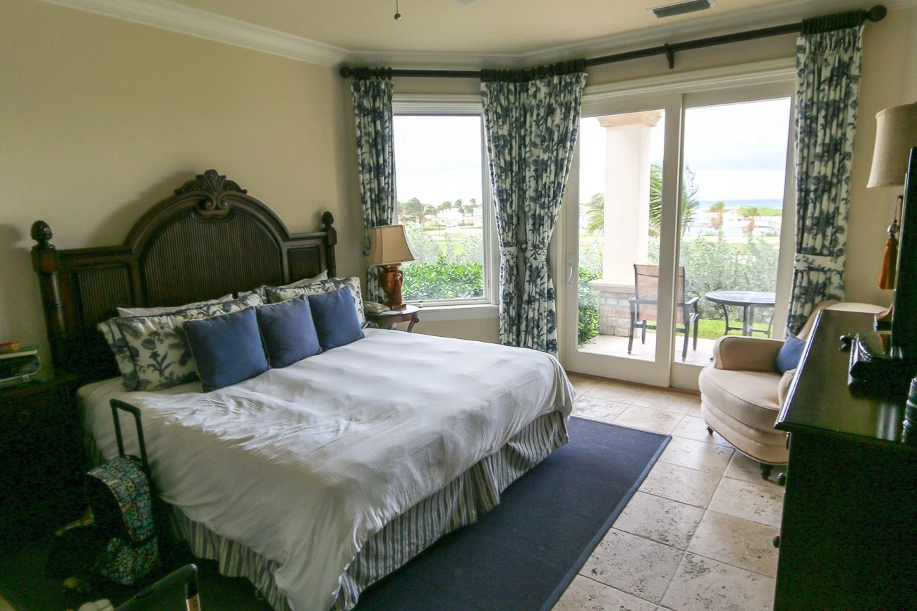 The resort arranged for a taxi to pick us up for the roughly 20-minute drive to its location in Emerald Bay, a lovely resort area that is perfect for a Bahamas vacation. I felt at ease enough by the friendliness of locals and the small island vibe to ask our taxi driver to stop at a convenience store on the way to the resort—an idea suggested by the concierge since the villas have a full kitchens. She then drove us to the lobby area for check-in and onward to our villa.