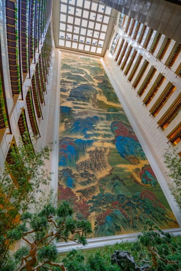 Not to be missed is the 16-story The Great Motherland of China, which spans floors 41-56. It’s the world’s largest indoor Chinese silk mural, featuring over 250 Chinese silk panels hand-painted by over 40 artisans over six months.