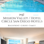 The Mission Valley Hotel Circle San Diego hotels price well is because of their freeway location inland from the beach near shopping centers, businesses, and high-density housing like condos and apartment complexes. You won’t have panoramic landscapes in your guest room view necessarily, but getting around town (outside of rush hour) can be easy from this bustling location.