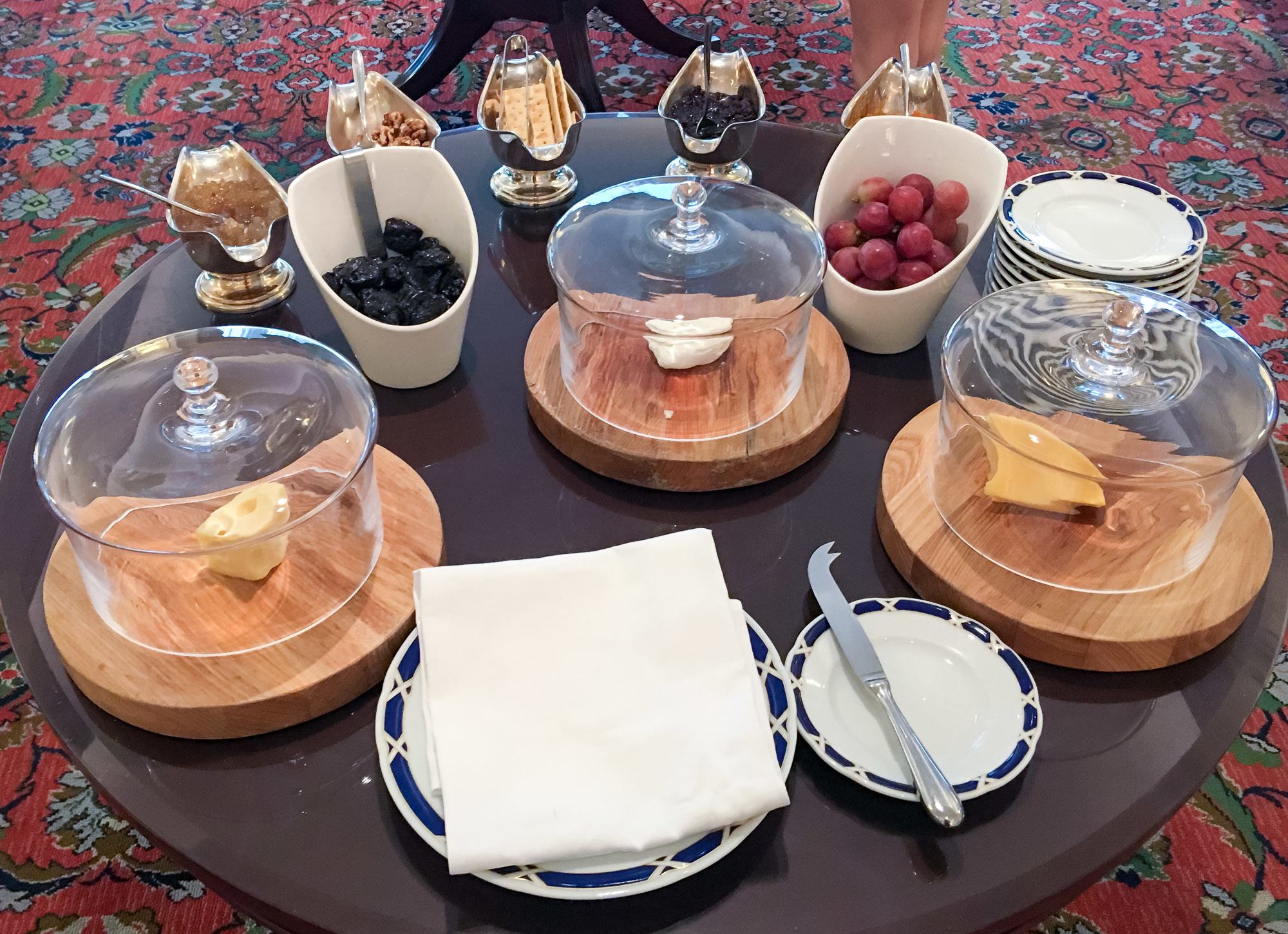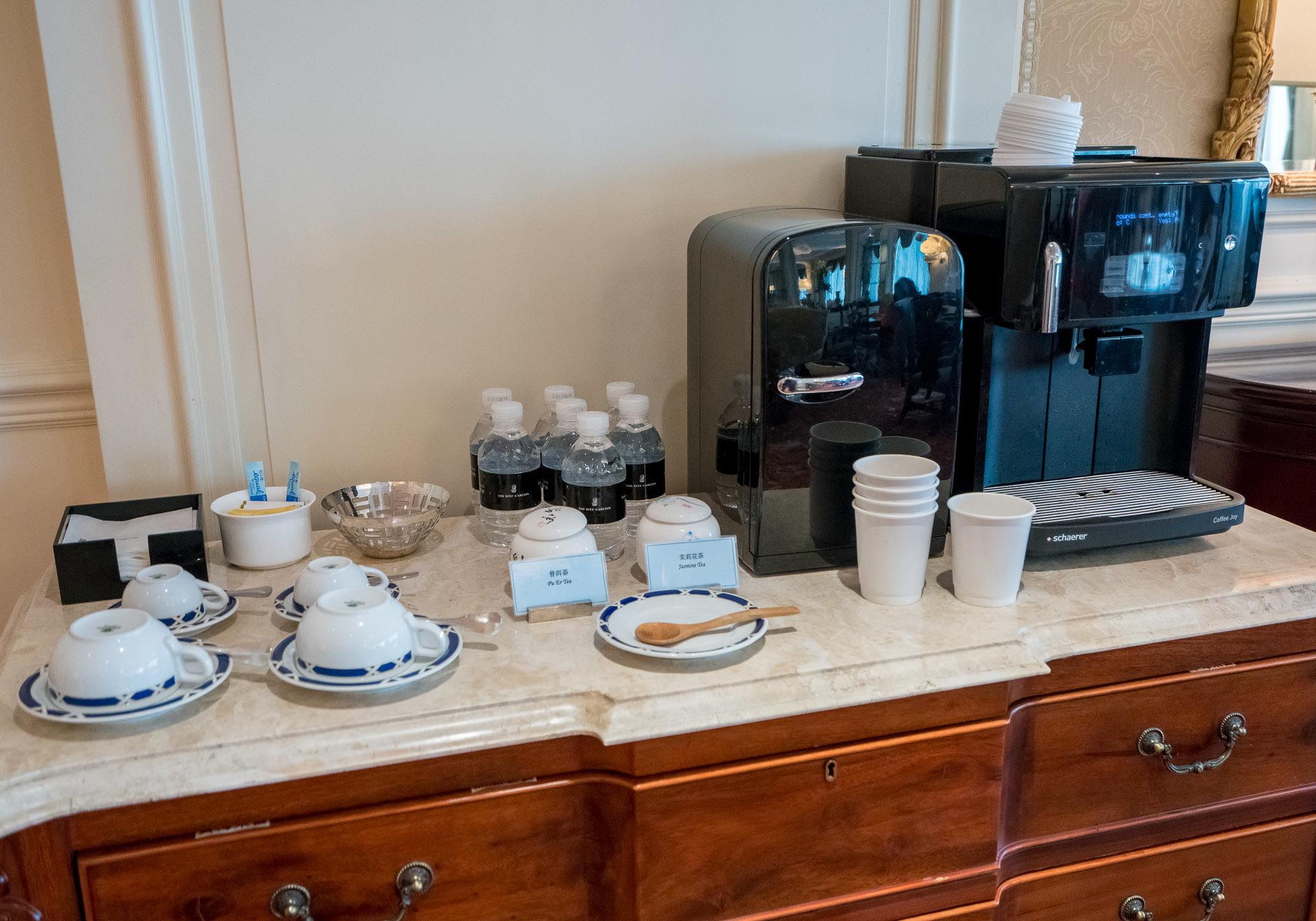 Devotees of Ritz-Carlton hotels and resorts look forward to the five food presentations per day in the Club Lounge. This foodie heaven is paired with all-day coffee and drinks, a dedicated concierge service, a lovely place to work and more (offerings to vary by hotel a little bit). Throughout our stay, we experienced all five food presentations and do believe that Club Lounge benefits greatly enhanced our stay.