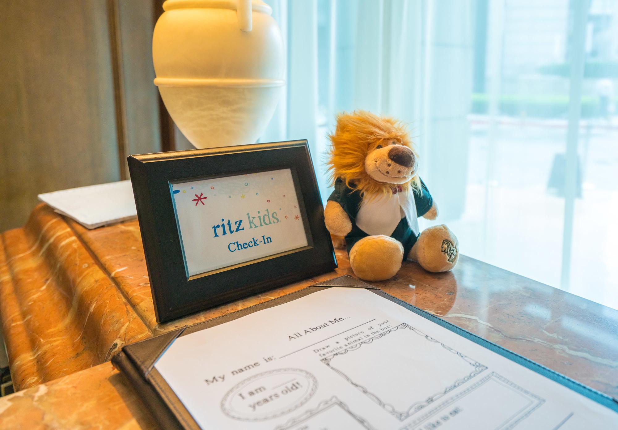 Kids have their own check-in desk with steps so they can reach the counter where they fill out a short survey with questions such as where they like to travel and favorite colors. After completion, kids are issued a Ritz Kids wristband.