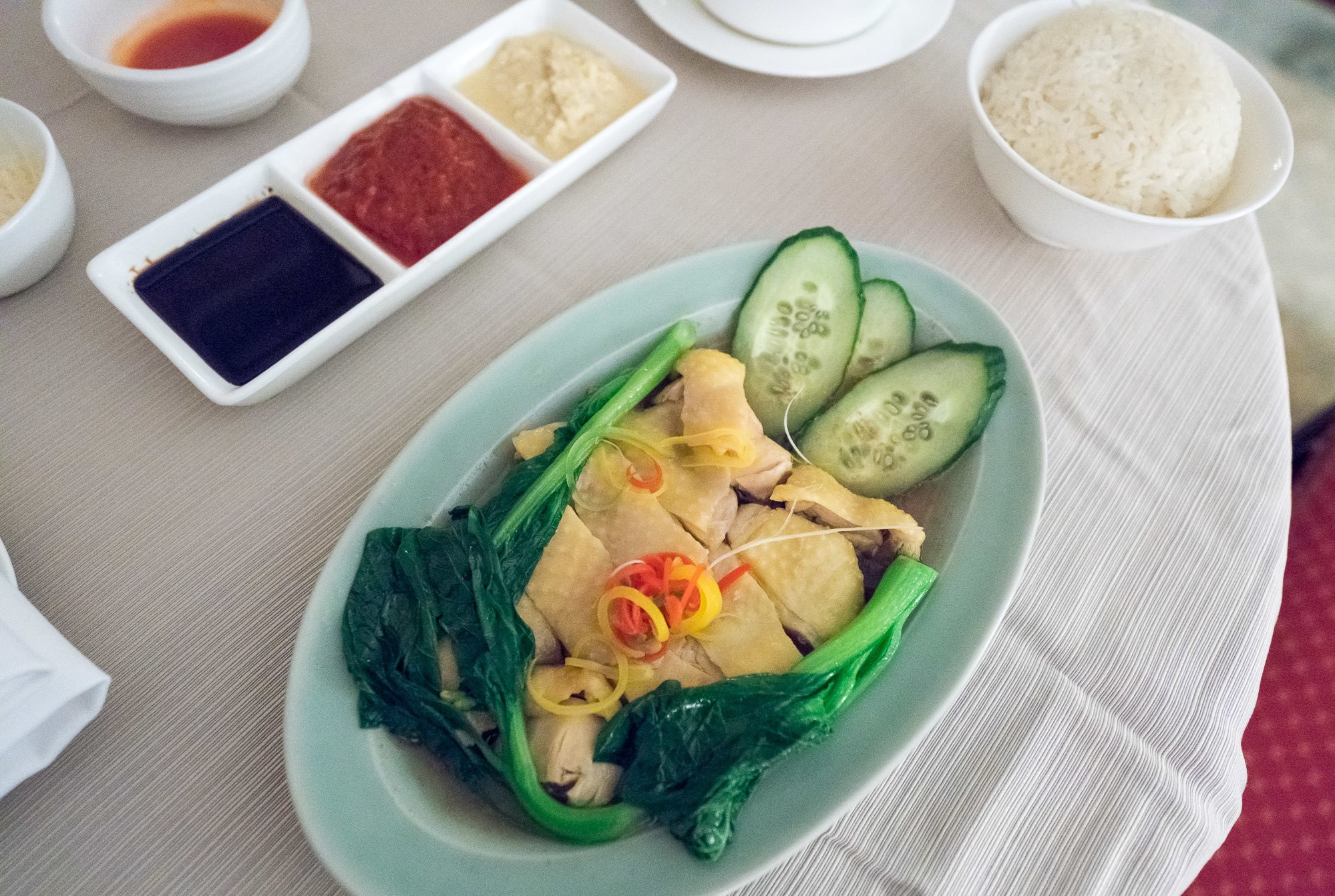 Due to flight delays, we arrived rather late to the hotel but, as is standard practice for us, a jet lag busting room service order arrived in about 20 minutes. I was impressed by the speedy delivery (I adore Hainanese chicken rice which is impossible to find in San Diego) and my daughter loved the in-room treat waiting for her.