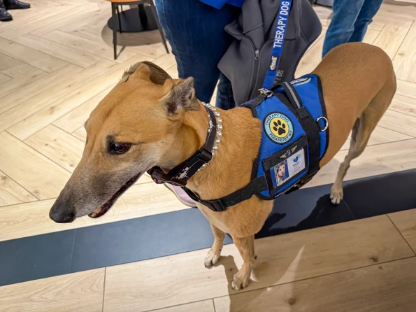 SAN’s volunteer program, Ready, Pet, GO!, brings certified therapy dogs and their handlers into the terminal. I do see them in gate areas and they love meeting kids and calming nerves. They aren’t always roaming the airport but keep an eye out for them.